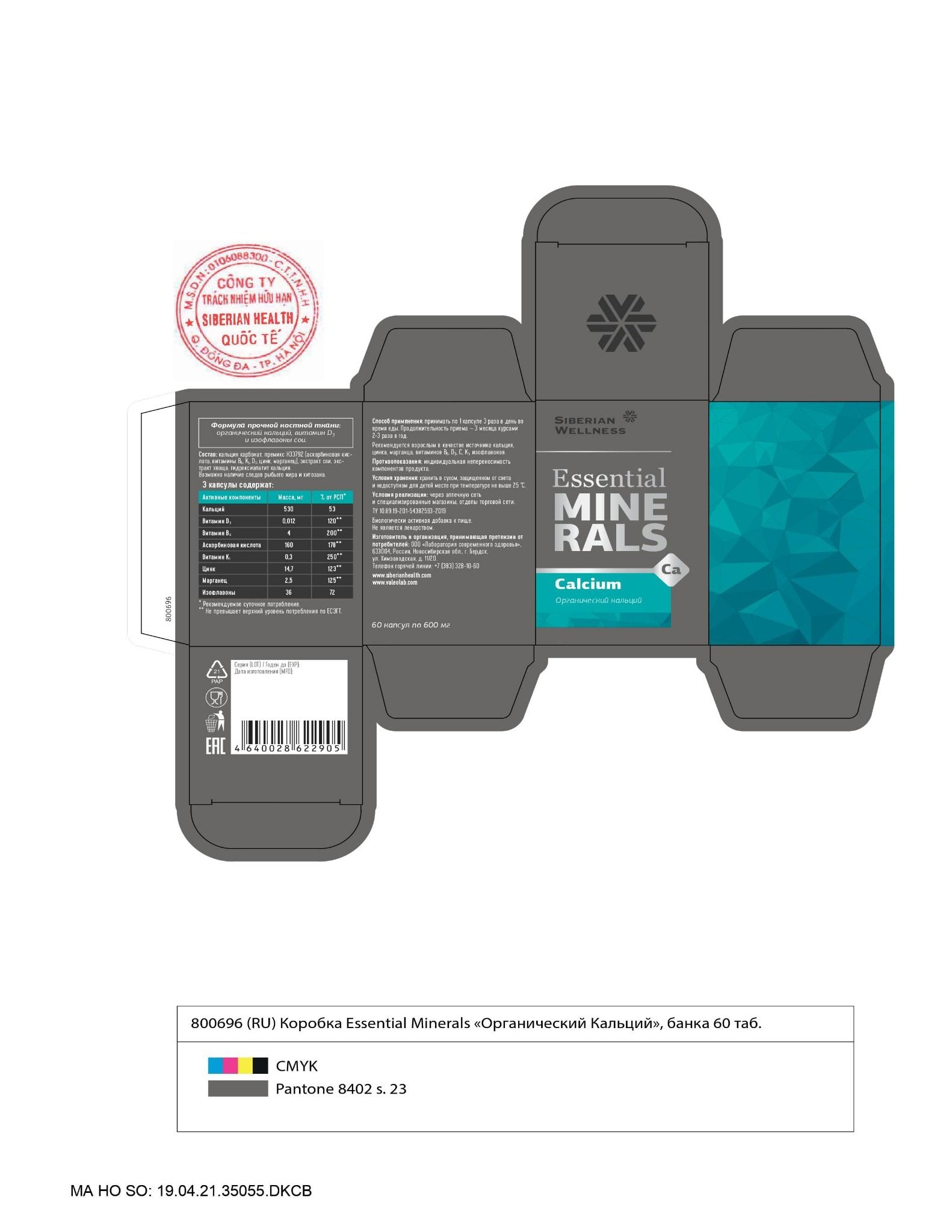 Canxi Hữu Cơ Siberian Wellness Essential Minerals Calcium -Thực phẩm bảo vệ sức khỏe Siberian Wellness công thức đặc biệt hấp thụ tối đa