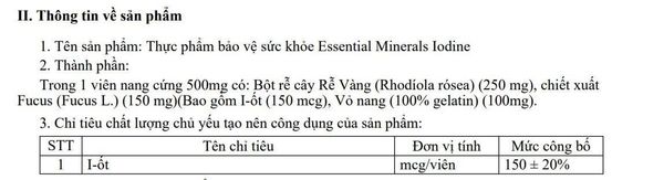Thực phẩm bảo vệ sức khỏe Essential Minerals Iodine i ốt