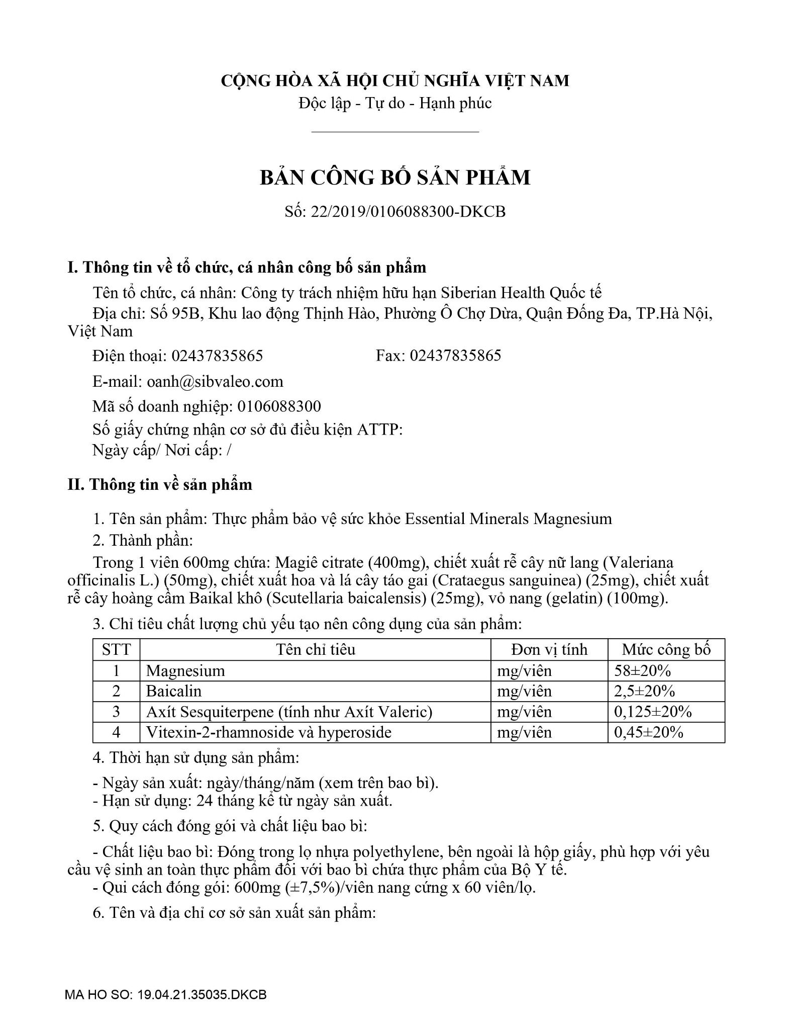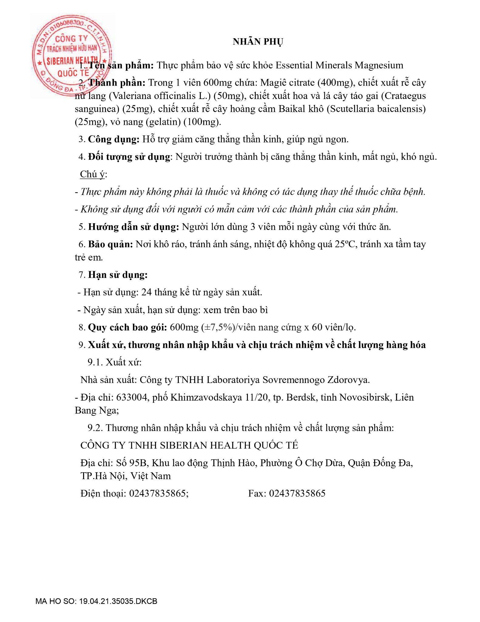 Essential Minerals Magnesium Siberian Wellness-magie hữu cơ cải thiện nhiều vấn đề sức khỏe