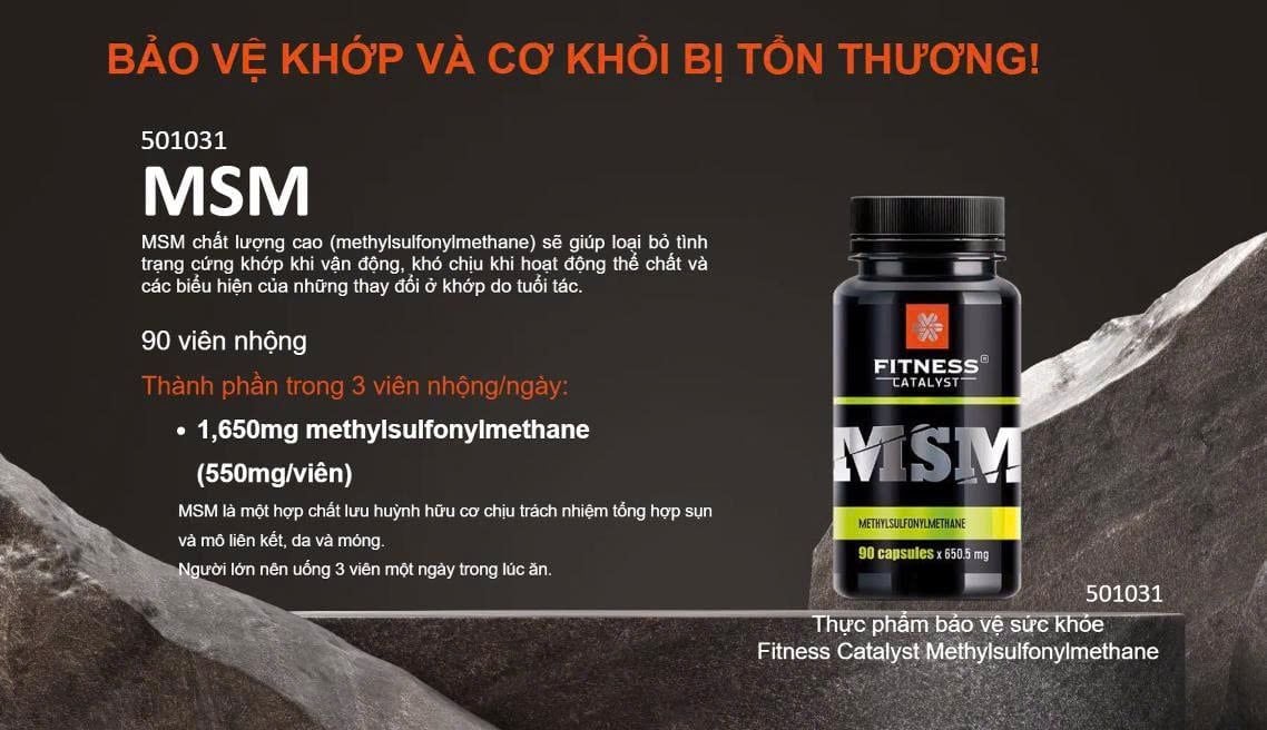 Viên Uống Bổ Xương Khớp MSM Hỗ Trợ Người Thoái Hóa Khớp, Giảm Đau Khớp Cùng Thực phẩm bảo vệ sức khỏe Fitness Catalyst Methylsulfonylmethane (MSM)