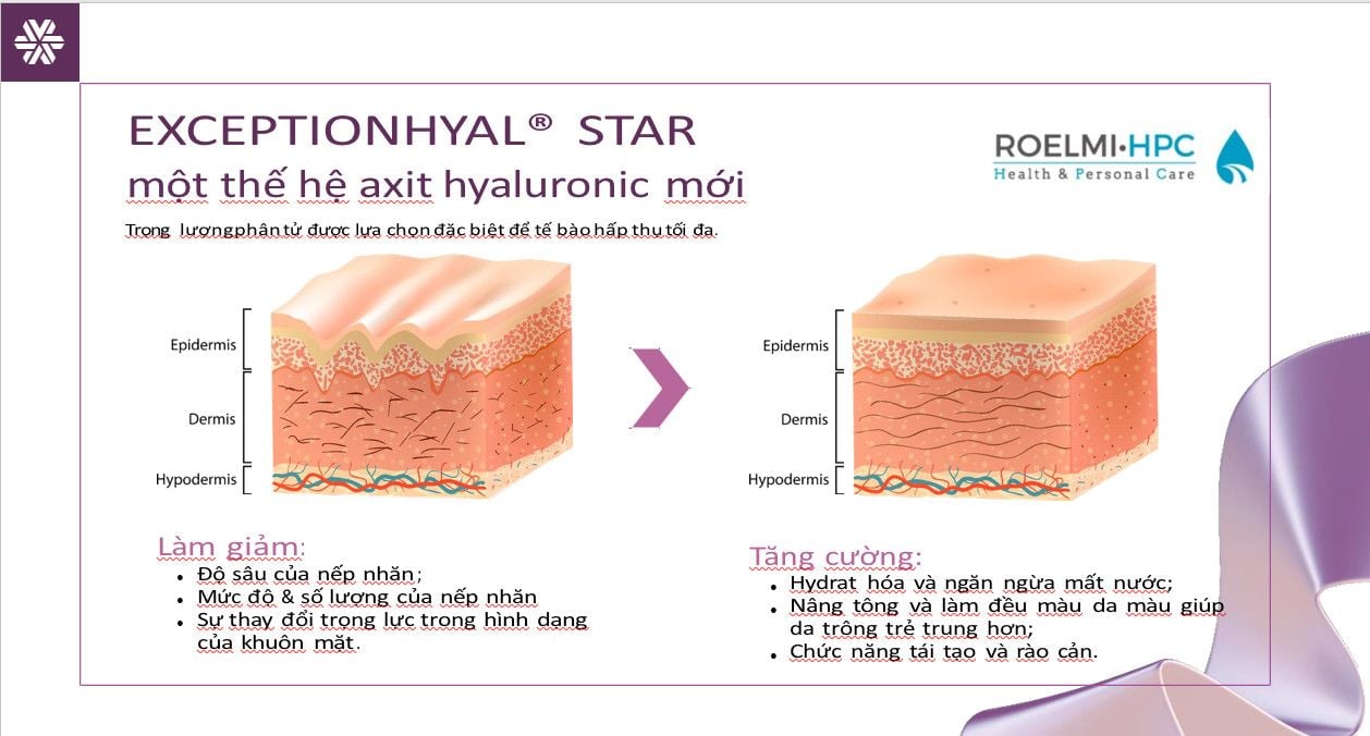 Làn da có đủ HA bề mặt da láng mịn, ít nếp nhăn, trẻ hơn