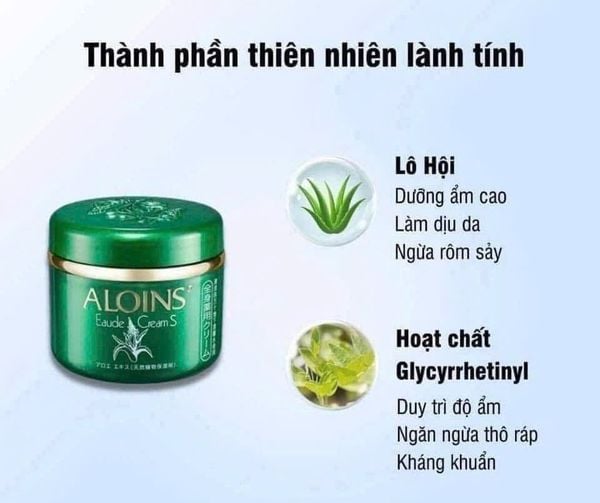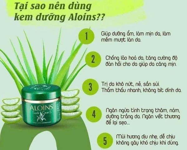 Kem dưỡng da Aloins là loại kem dưỡng được chiết xuất từ cây lô hội có tác dụng nuôi dưỡng làn da mịn màng, tạo độ ẩm sâu cho da. Cung cấp những dưỡng chất cần thiết cho 1 làn da khoẻ mạnh, bảo vệ ADN màng tế bào. Các thành phần trong kem dưỡng da Aloins giúp phân hủy nhanh các hắc tố melanin mới hình thành, chính là những tác nhân gây lão hoá cho da. Đồng thời, ổn định chức năng hô hấp và bài tiết của da, kiểm soát được tiến trình lão hóa. Giúp bạn có được làn da tươi trẻ, mịn màng như ý khi mùa khô hanh đến.
