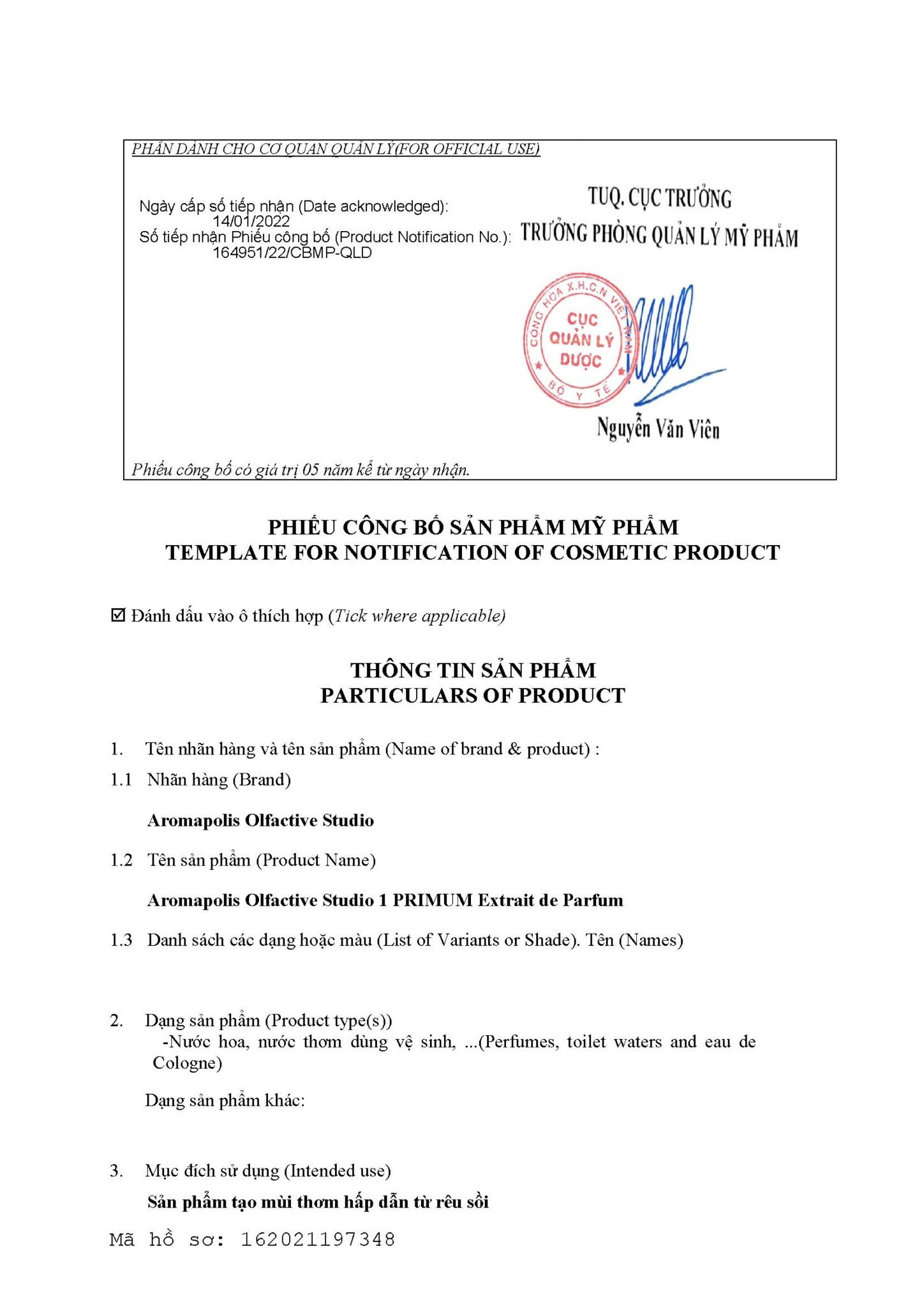 Nước hoa Aromapolis Olfactive Studio 1 PRIMUM Extrait de