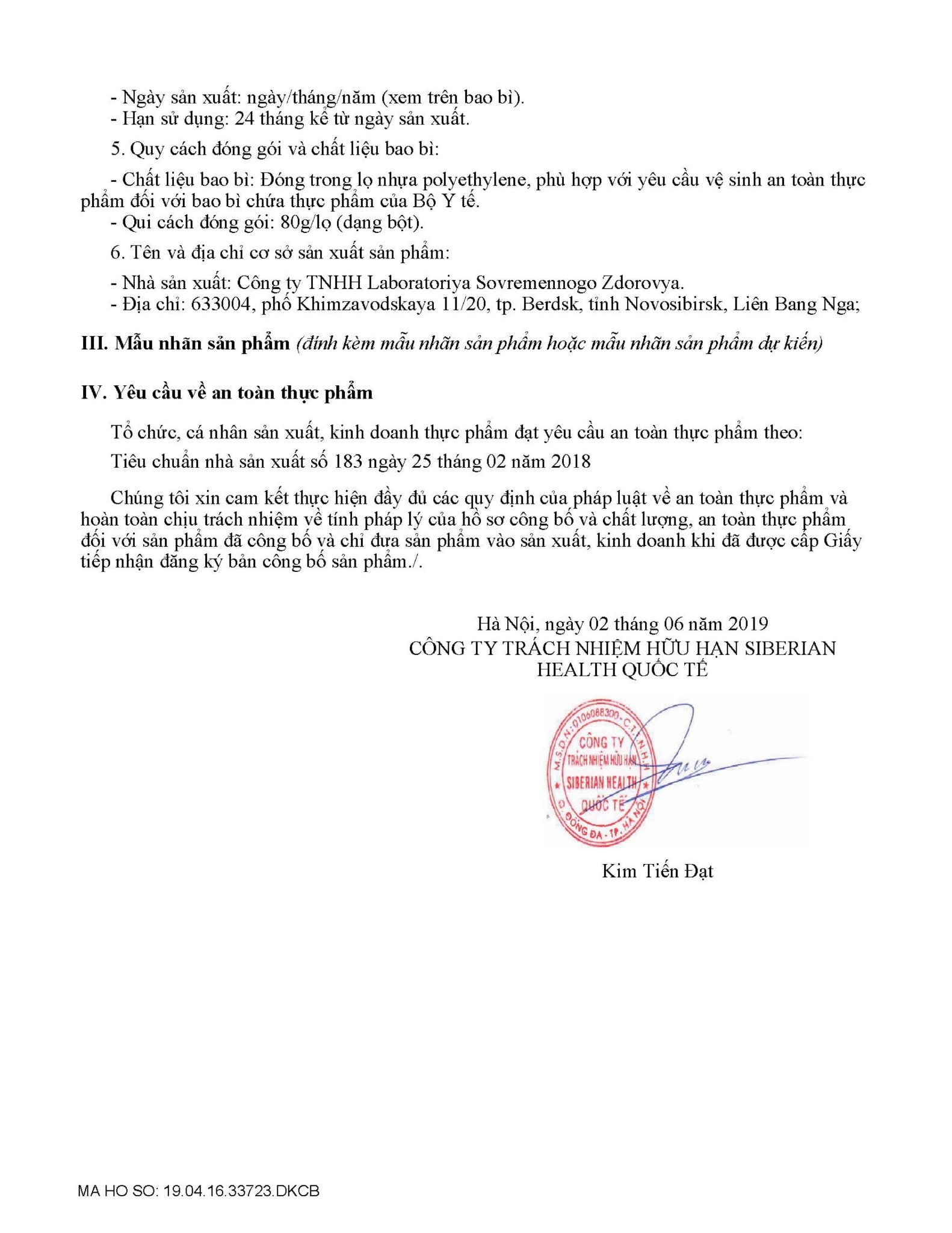 CÔNG TY TNHH SIBERIAN HEALTH QUỐC TẾ