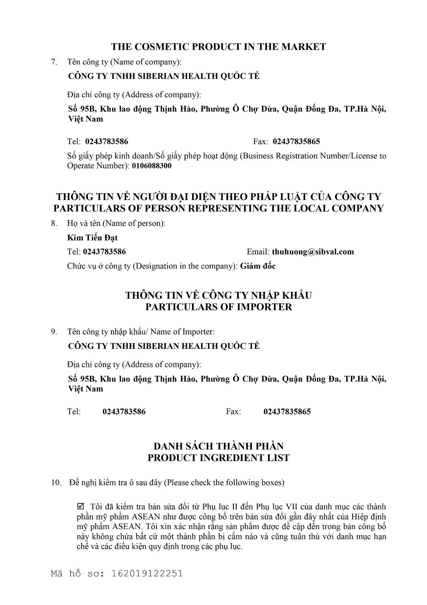 CÔNG TY TNHH SIBERIAN HEALTH QUỐC TẾ