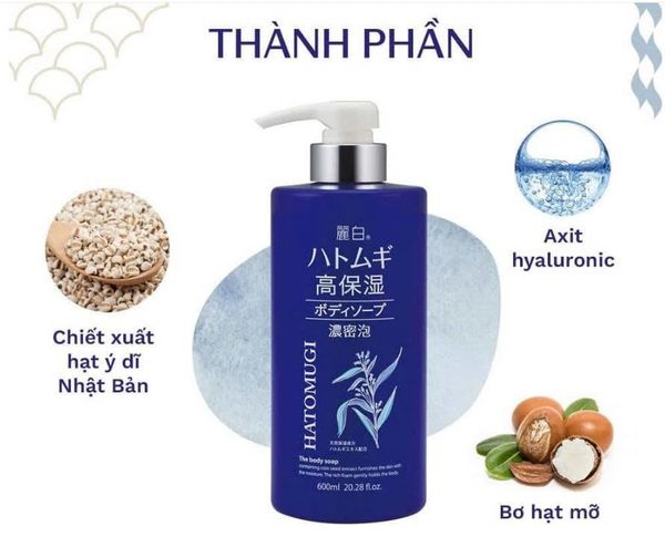 Sữa tắm Hatomugi 600ml Nhật Bản chiết xuất hạt ý dĩ giúp làm sạch da nhẹ nhàng, dưỡng ẩm sâu và mang lại làn da mềm mịn, tươi sáng tự nhiên.