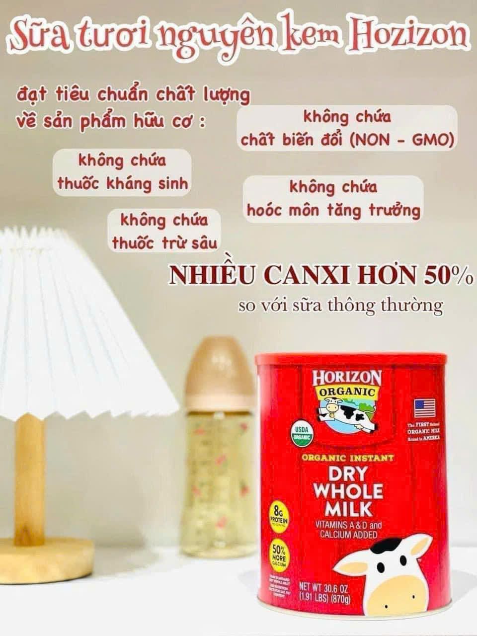 𝐒𝐔̛̃𝐀 𝐁𝐎̣̂𝐓 𝐇𝐎𝐑𝐈𝐙𝐎𝐍 𝐎𝐑𝐆𝐀𝐍𝐈𝐂 𝐃𝐑𝐘 𝐖𝐇𝐎𝐋𝐄 𝐌𝐈𝐋𝐊 nguyên kem Horizon Organic® có gì đặc biệt?