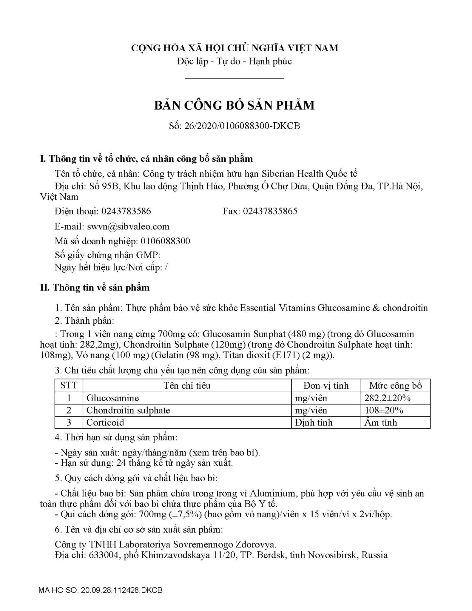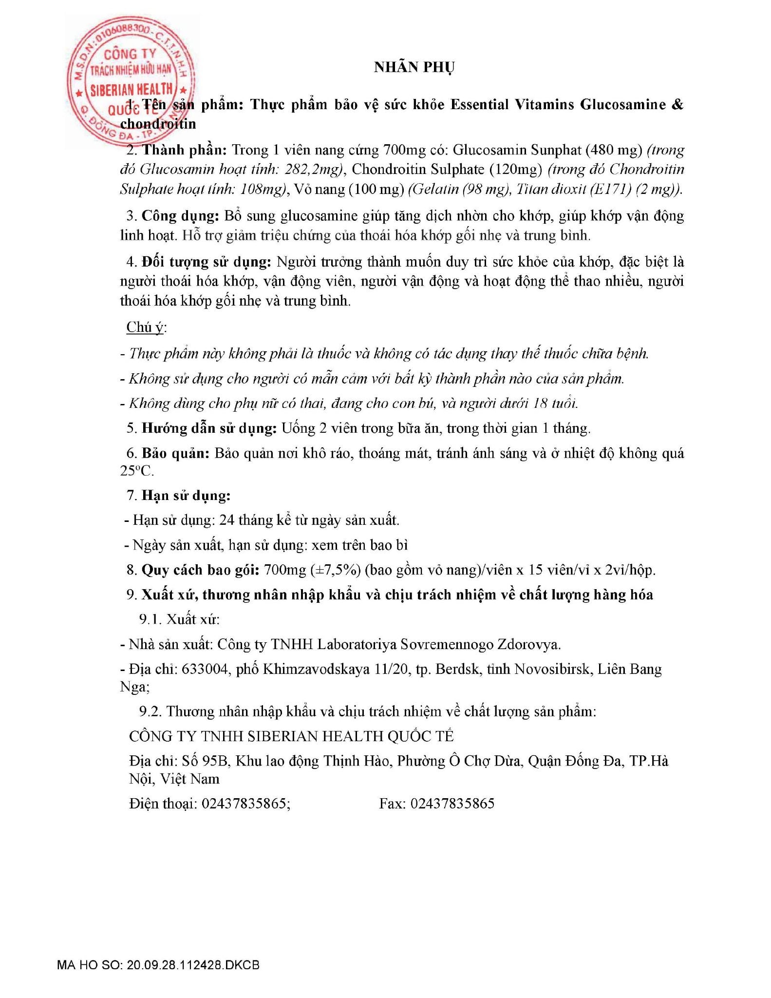 Thành Phần Viên Uống Bổ Sung Glucosamine & Chondroitin Essential Vitamins Hỗ Trợ Sụn Khớp: