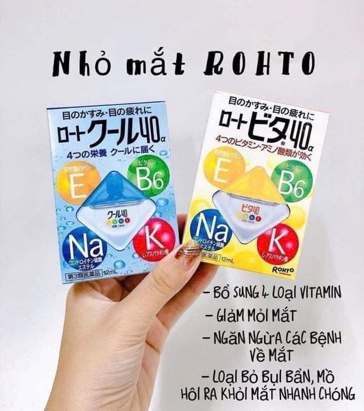 Thuốc nhỏ mắt Rohto từ Nhật cung cấp 4 loại vitamin trực tiếp vào mắt. Từ đó cải thiện hiệu quả các vấn đề như mỏi mắt, cay mắt, nhức mắt làm việc với máy tính lâu, bụi bẩn sau khi đi ngoài đường hay các trường hợp khác.