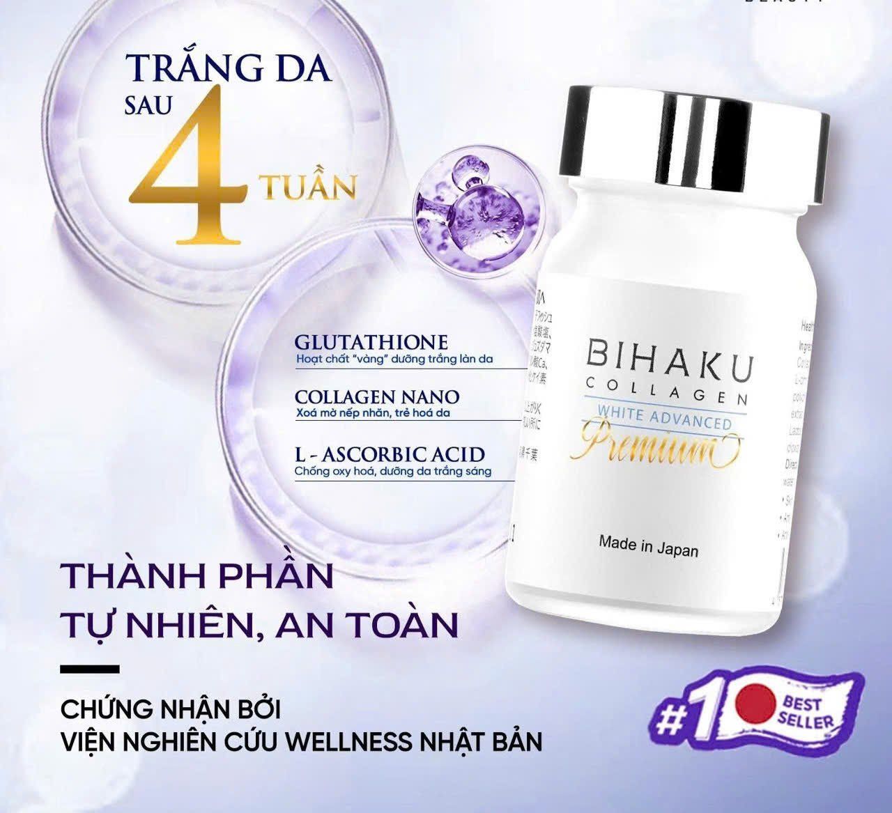 Viên uống trắng da Bihaku Collagen Premium -Bí Quyết Làn Da Trắng Hồng Tự Nhiên