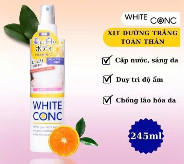 Xịt khoáng White Conc là sản phẩm chăm sóc da đến từ Nhật Bản, nổi bật với công dụng dưỡng ẩm tức thì, làm sáng da và bảo vệ da trước tác động từ môi trường. Với chiết xuất Vitamin C thiên nhiên, sản phẩm mang lại cảm giác tươi mát, giúp da rạng rỡ và mịn màng suốt cả ngày.